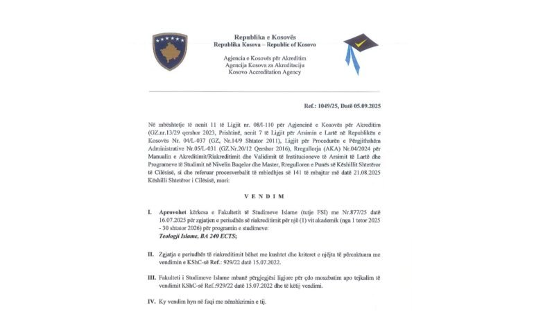 LISTA PRELIMINARE E KANDIDATËVE TË CILËT KALUAN PROVIMIN PRANUES NË BAÇELOR NË FAKULTETIN E STUDIMEVE ISLAME More