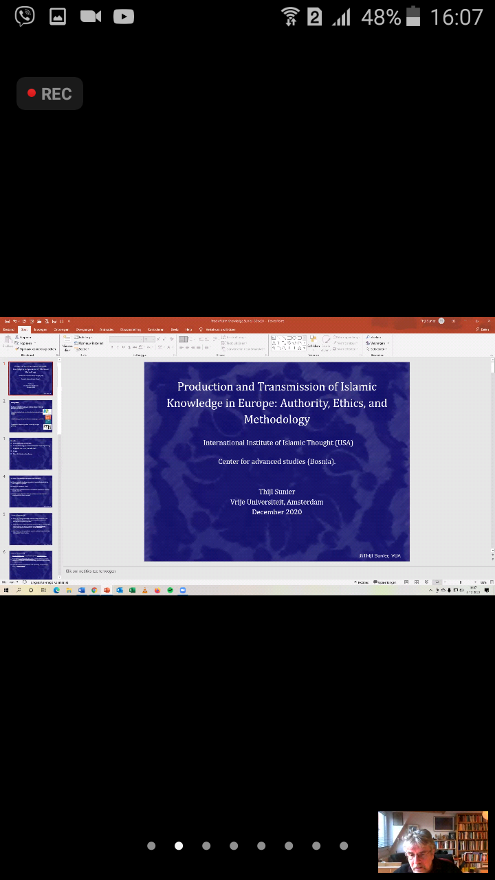 Ligjëruar nga Prof. Thijl Sunier. profesor i Antropologjisë Kulturore Leksioni synoi që, ndër të tjera, t’i përgjigjet pyetjeve me sa vijon: Si marrin myslimanët në Evropë njohuri diskursive dhe praktike të Islamit? Si transmetohen konceptimet e besimeve, vlerave dhe praktikave Islame dhe si ndryshojnë ato? Kush janë autoritetet për këto çështje që myslimanët i dëgjojnë? Si shfaqen diskurset e reja myslimane në përgjigje të kontekstit evropian? Përveç tjerash ligjëruesi foli rreth pozitës së Ulemasë. Ndërhyrja e shtetit me trajnime. Rasti i trajnimit tĕ imamëve në Holandë. Modernizimi dhe glabalizimi. ‘Imamët’ online. Kush po flet për Islamin dhe si po flet? Në këtë takim virtual morën pjesë studiues dhe profesorë të njohur siç janë Omar Kasule, Ahmet Alibasic, si dhe studiues të tjerë nga Bosnja, Gjermania, Kroacia, Arabia Saudite, Holanda, Norvegjia dhe Kosova. Përveç ligjëratës mjaftë të dobishme dhe aktuale nga profesori i nderuar, ishte dhe diskutimi i pjesmarrësve që e begatoi edhe më shumë këtë takim. Ku u bënë pyetje për tema mjaftë aktuale nga të gjithë pjesmarrësit.
