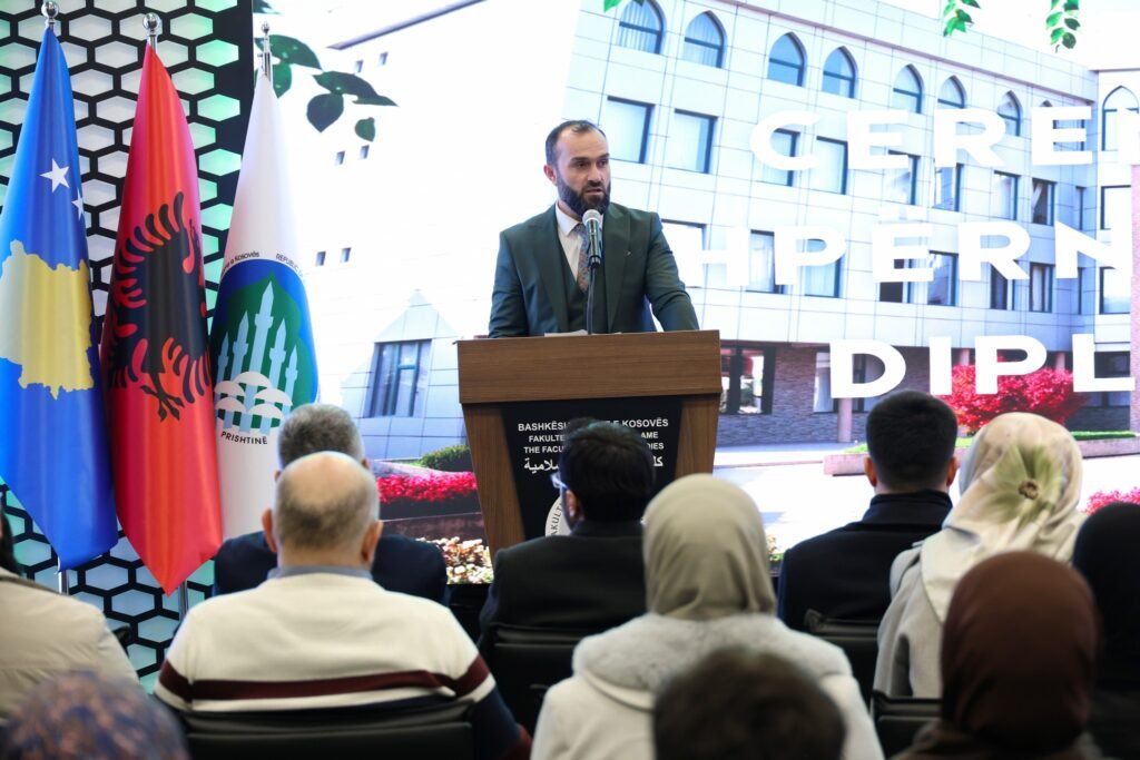 Me këtë rast, dekani i Fakultetit të Studimeve Islame, prof. dr. Islam Hasani, përgëzoi studentët e diplomuar për përkushtimin dhe suksesin e treguar gjatë studimeve, duke iu uruar atyre shëndet, fat dhe suksese në rrugëtimin e tyre profesional dhe akademik. Ai, gjatë fjalimit të tij, gjithashtu i njohu studentët e diplomuar për hapjen e studimeve të doktoratës në këtë Fakultet, duke i inkurajuar studentët që të vazhdojnë avancimin e tyre shkencor dhe akademik.